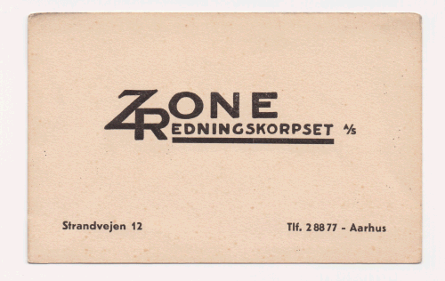 Visitkort Zone-Redningskorpset A/S Aarhus Strandvejen 12