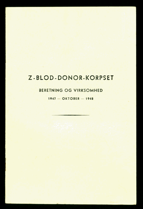 | Otte-siders tryksag med beretning om ZR's arbejde med etablering af et bloddonorkorps i 1947/1948 |