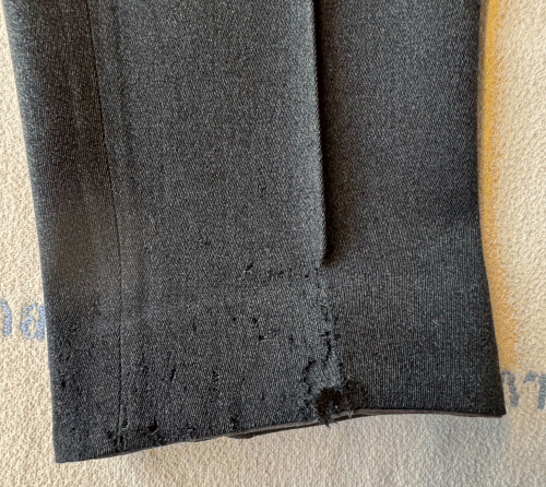 RestaureringLille knap påsyet. Hentet i stærkt skadet tilstand på DTMs arkiv i juni 2025. Kemisk renset. Har fået adskillige skader i form af huller mv. fra mølangreb. Nye fotos september 2025.