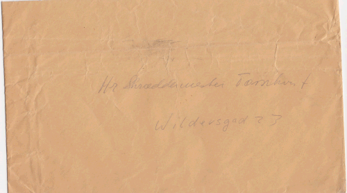 | Udfyldt blanket Rekvisition til Skræddermester Tørnkvist Uniformsjakke og -bukser til Driftslederen på St. H med brun kuvert uden logo etc. adresseret til skræddermesteren |
