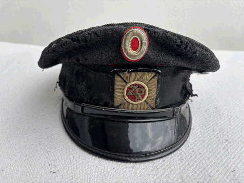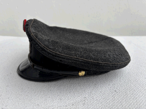 | Kasket til reversuniform med vævet stofmærke, stor model. Guldsnor i øverste kant. Leveret af Magasin du Nord. |